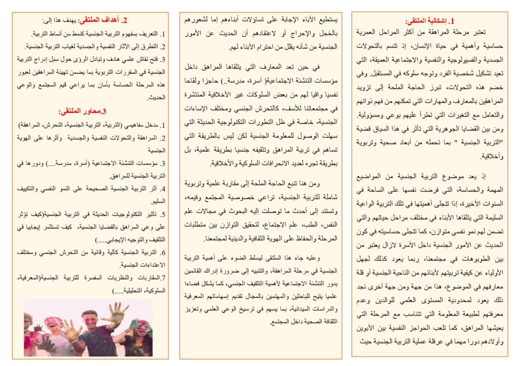 إعلان عن ملتقى وطني التربية الجنسية للمراهق بين متطلبات المرحلة وطابوهات المجتمع(حضوري / افتراضي) يوم 24 نوفمبر 2025
