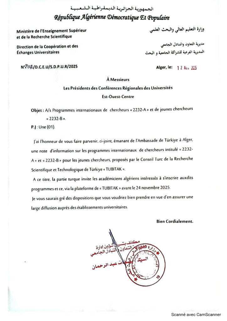 برامج البحث الدولية “2232-A” و “2232-B” التابعة لمجلس البحث العلمي التركي (TUBITAK) المخصصة للباحثين الشباب والمقترحة من قبل مجلس البحث العلمي والتكنولوجي التركي (TUBITAK)