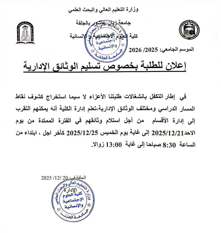 إعلان للطلبة بخصوص تسليم الوثائق الإدارية webmaster 3 ساعات مضت الاعلانات التعليقات على إعلان للطلبة بخصوص تسليم الوثائق الإدارية مغلقة 3 زيارة مقالات مشابهة دعوة للترشح لتجديد المجلس العلمي للجامعة أسبوعين مضت دعوة أساتذة طلبة الدكتوراه لحضور الأيام الدكتورالية حول النشر الأكاديمي أسبوعين مضت تعزية 3 أسابيع مضت شاركها Facebook Twitter Google + Stumbleupon LinkedIn Pinterest