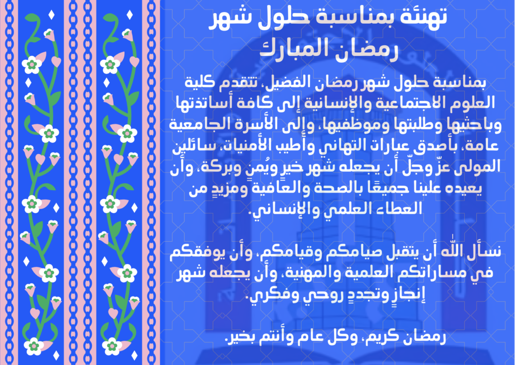 تهنئة بمناسبة حلول شهر رمضان المبارك webmaster 21 ساعة مضت الاعلانات التعليقات على تهنئة بمناسبة حلول شهر رمضان المبارك مغلقة 8 زيارة مقالات مشابهة بخصوص توقيت الدراسة خلال شهر رمضان الكريم للموسم الجامعي 2026/2025 يومين مضت تعزية 6 أيام مضت تهنئة أسبوعين مضت شاركها Facebook Twitter Google + Stumbleupon LinkedIn Pinterest
