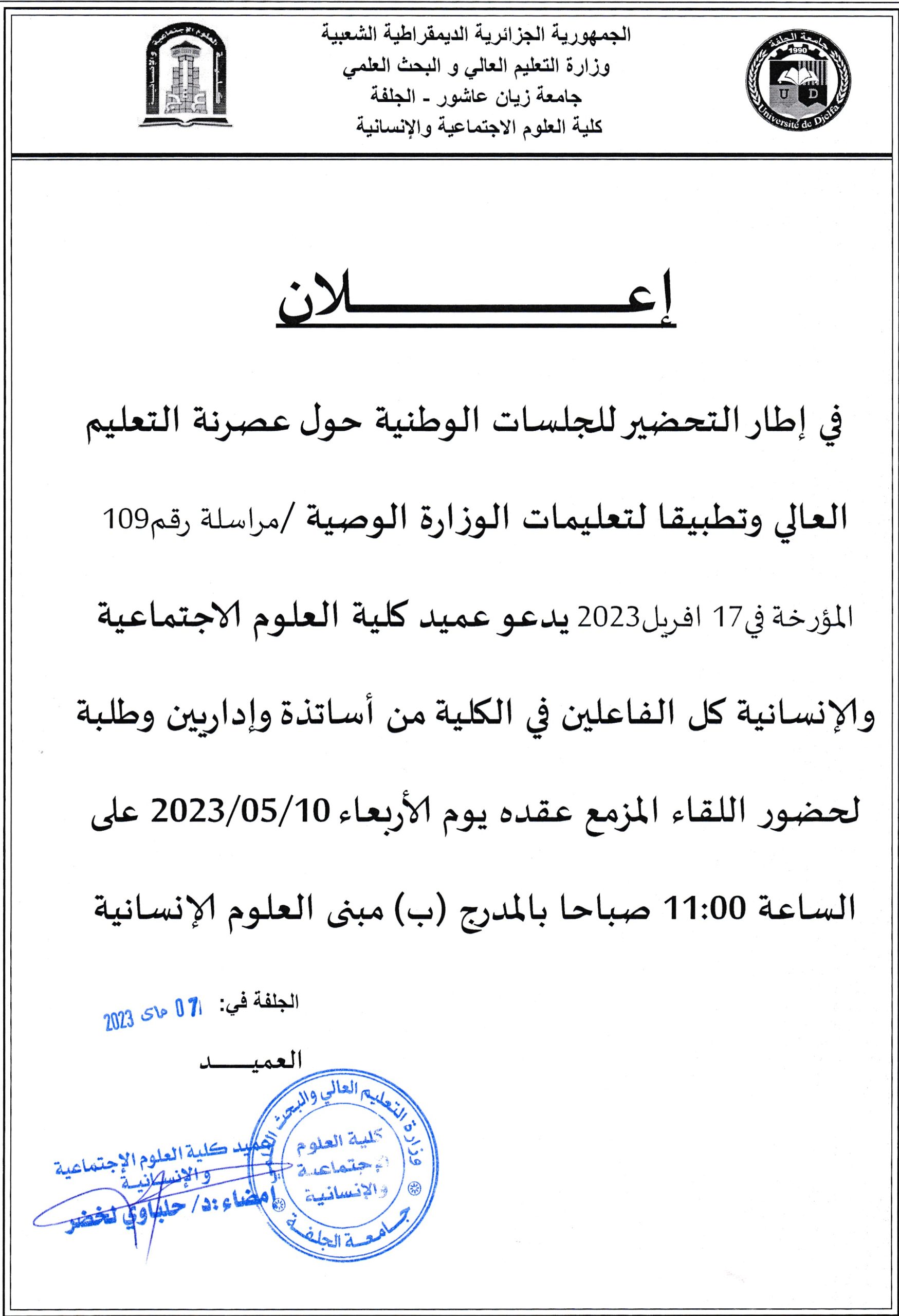 امتحانات السداسي الثاني +إمتحانات الديون مع توزيع الطلبة على القاعات لقسم علم المكتبات و الإعلام و الاتصال